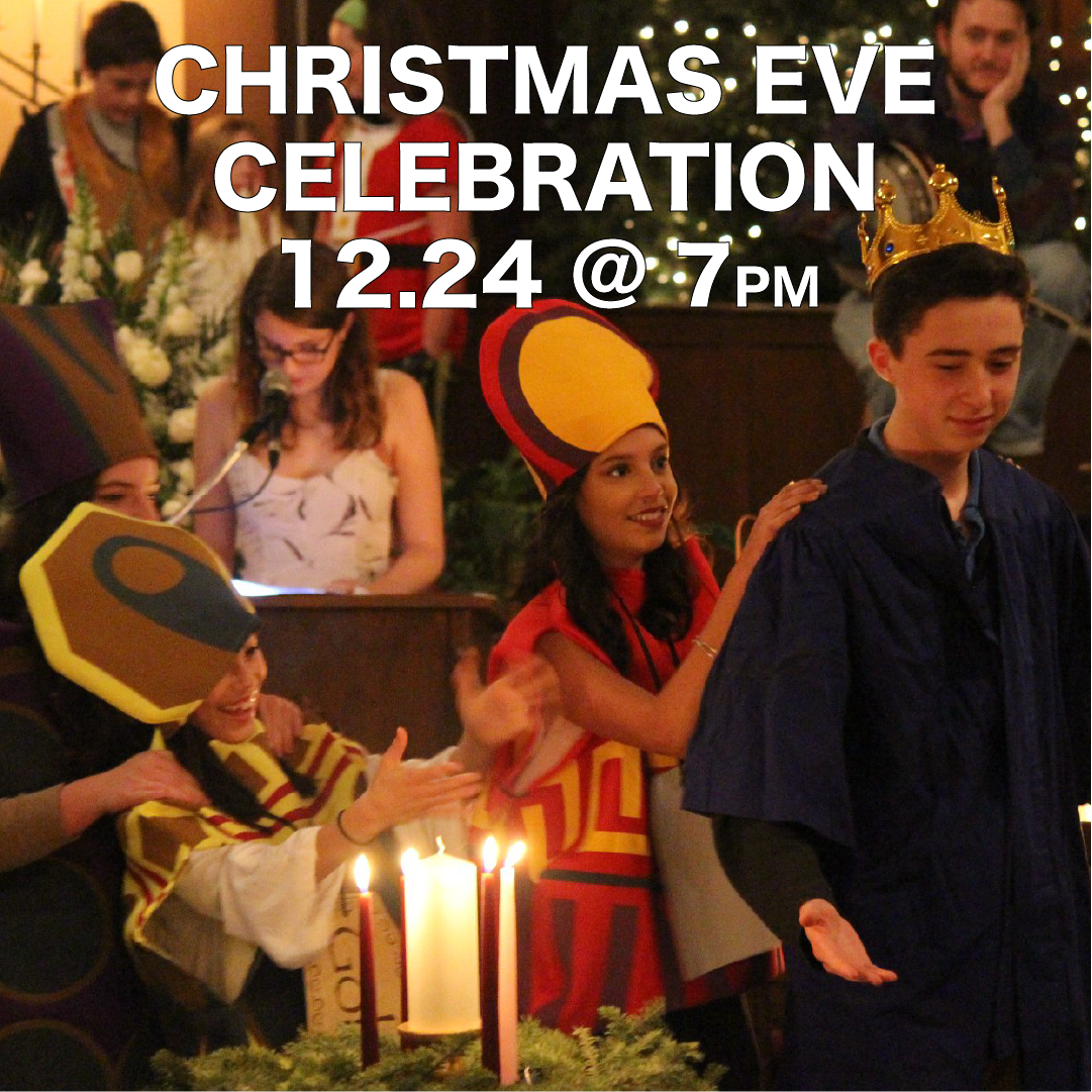 Join with us on Christmas Eve at 7pm for our annual celebration of the story of the birth of Jesus of Nazareth through the telling of the story, sining carols, an instant Christmas Pageant, Candles and Chocolate! Our service lasts for 50 minutes. We’ll provide the costumes!