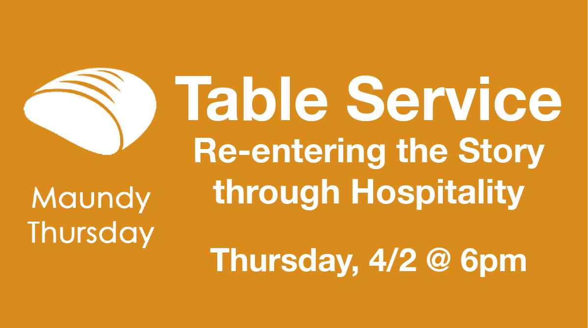 Thursday 4/2 we are doing a Maundy Thursday Table Service - potluck dinner gathering at 6:00pm.