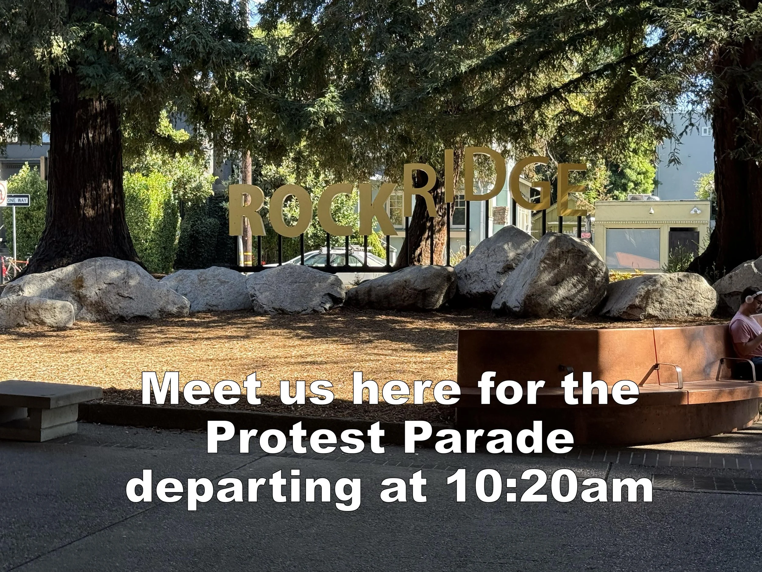 Meet at Rockridge BART at 10:00am to get ready. We’ll walk, sing and ask for justice with signs departing at 10:15-20am to arrive in time for our Sunday Gathering at 10:30am.